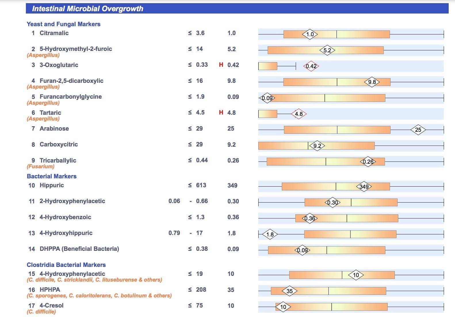 The 76 metabolites, including creatinine, detected in the OAT can indicate vitamin and hormone metabolism, energy cycle function, intestinal wall integrity, neurotransmitter metabolites, and muscle function. Contact me to order.
